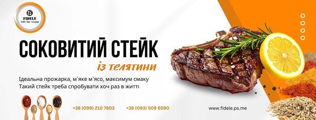 * Вагу стейка та ступінь просмаження уточніть будь ласка у офіціанта за номером (099) 210 78 03
